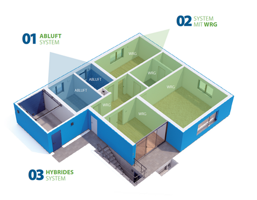 LUNOS Lüftungssysteme basieren auf einer bedarfsgerechten Durchströmung des gesamten Wohnbereichs, womit sie sich bestens für die kontrollierte Wohnraumlüftung (KWL) eignen. Für eine nachhaltige und effiziente Lüftung können die dezentralen Lüfter von LUNOS zu drei unterschiedlichen Lüftungssystemen kombiniert werden.