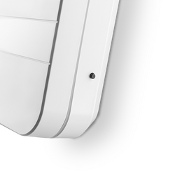 Dieses Design-Key-Feature unterstützt genau die Kernaussage der Funkblende. Sie erledigt ihre Aufgabe und bleibt dabei so unsichtbar wie irgend möglich. Auch die Technik fügt sich wunderbar ein. Im geöffneten Normalzustand kann die Luft ohne Störgeräusche im oberen Bereich zirkulieren, da alle elektronischen Steuerungsbauteile unterhalb des F7-Filters im Gehäuse platziert sind. Erst wenn der Lüfter geschlossen ist, steht die untere Flächenkante angewinkelt in den Raum, um auf die Unterbrechung des Normalzustands hinzuweisen.