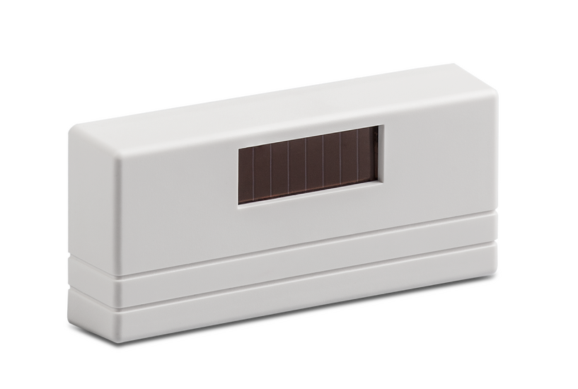 The external humidity/temperature sensor SFT-EO is an extremely versatile device that can be easily installed in almost any location without the need for an additional power supply. This means no cables and no batteries or rechargeable batteries, as the power is supplied via integrated PV modules, which provide enough power for the module even in indoor areas. This feature makes it particularly flexible and user-friendly.