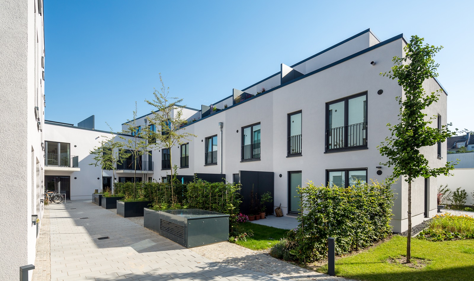 | Gebäudetyp | 14 einzelne Häuser mit zwei großen grünen Innenhöfen |